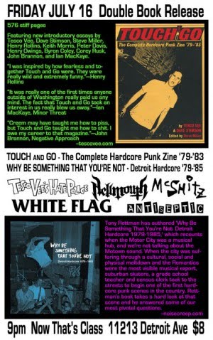 TONY RETTMAN (AUTHOR OF WBSTYN) & IAN CHRISTIE (PUBLISHER OF 'TOUCH & GO FANZINE - THE BOOK') WILL LEAD A 'DISCUSSION' (EW! ER!) ON BOTH BOOKS AS WELL AS SHOW RARE FOOTAGE OF DETROIT HARDCORE SHOWS FROM THE EARLY 80'S. THERE MIGHT EVEN BE A SPECIAL GUEST...BUT THEY HAVEN'T CONFIRMED YET! IAN & TONY WILL ALSO BE ON DIANES' KAMIKAZEE FUN MACHINE SHOW ON WFMU THAT AFTERNOON AS WELL...SO IT'S GONNA BE A JAM PACKED DAY!
